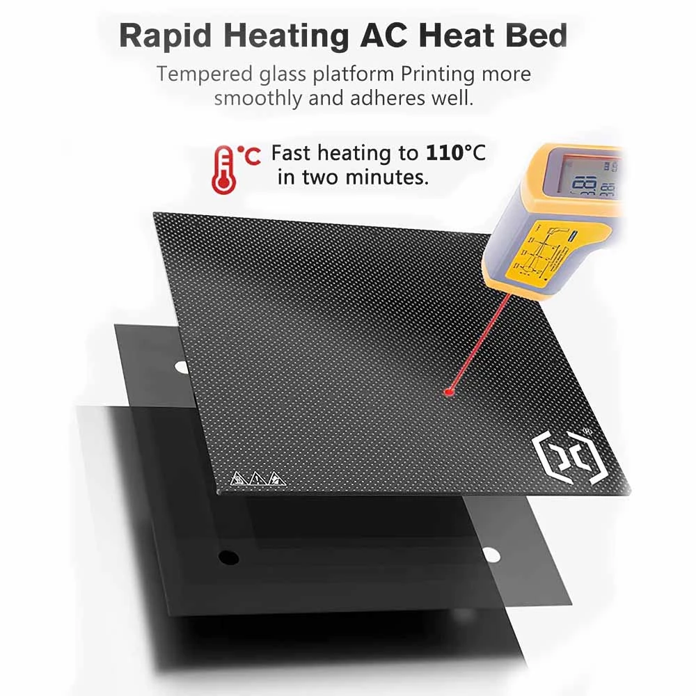 8. Rapid heating AC heat bed, it can be heated to 110 °C in 2 minutes