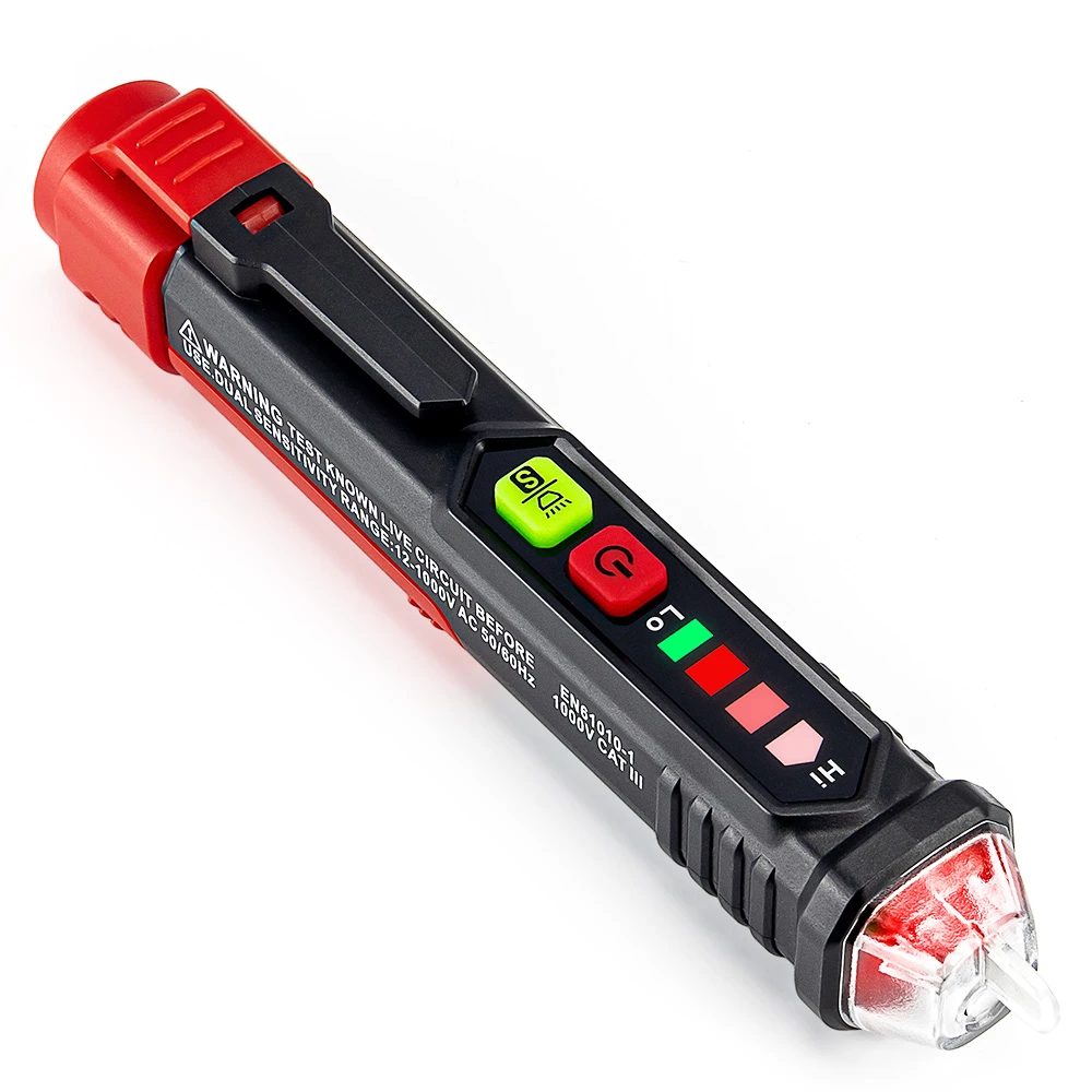 It can detect standard and low voltage (12-1000V AC / 48-1000V AC) for more sensitive and flexible measurements. Press the S button to adjust sensitivity and adapt the low range for doorbells, thermostats, irrigation wiring, etc.; The NCV sensor automatically recognizes the voltage and displays it on the bar graph.