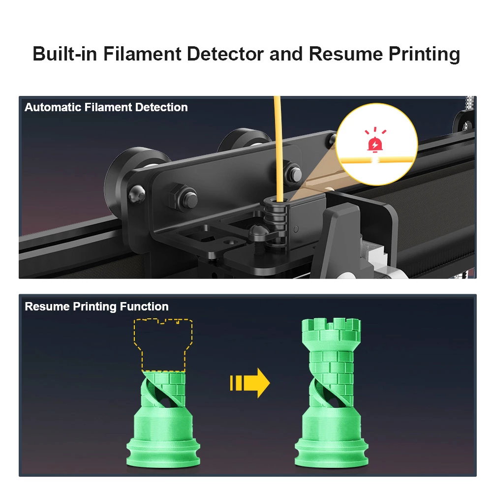 Use TMC Stepper Motor Drivers, Super Quiet and Noise Reduction, running more stable,≤50dB silent printing