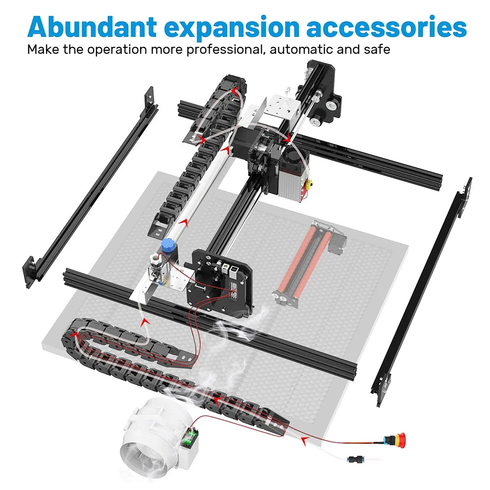 NEJE 3 Pro is equipped with automatic air assist, automatic smoke control components, and door expansion function, and is compatible with most NEJE series modules. The expansion function is perfectly suitable for lightburn, laserGRBL, and NEJE software APP, it can complete a variety of complex processes at one time, enough to build a perfect laser engraving and cutting system.