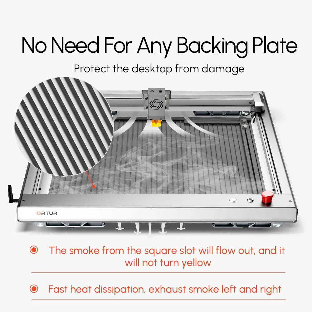 It features fast heat dissipation and can exhaust smoke left and right. 1.75kg weight makes it 50% lighter than the honeycomb panel, and the 448x400mm large working area is suitable for the most popular laser engraving machines.