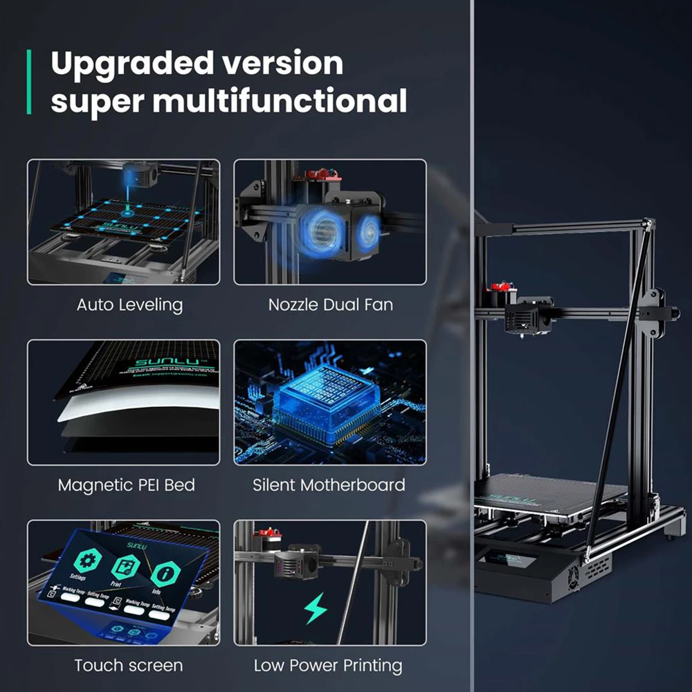 | Specification | Build volume: 310×310×400 (mm) Printing speed: 20-250mm/s Printing accuracy: ± 0.1 mm Suggest Material: 1.75mm PLA, PLA+, carbon fiber, ABS (low temp), PETG, HIPS WOOD, PCL, TPU Operating noise: ≤ 58 dB Nozzle temperature: ≤ 500 Fahrenheit / 260 Celsius Heated bed temperature: ≤ 212 Fahrenheit / 100 Celsius |