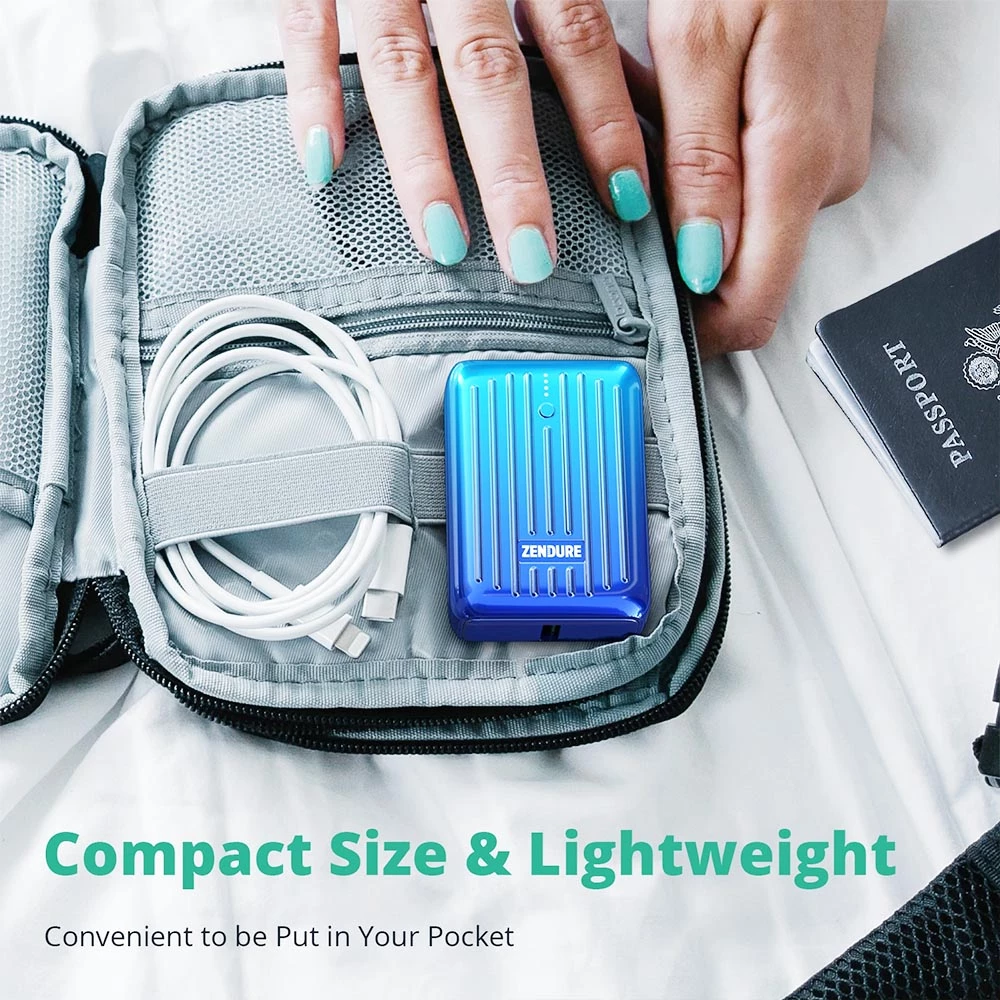 Superior Portability & Compact: Zendure Supermini portable power bank with the 21700 premium internal battery cells, ultra-slim suitcase design with metallic texture. 180g, smaller than a credit card, ONE of the smallest 10,000mAh external batteries on Amazon, worry-free to slip in your bag or pocket for daily use.