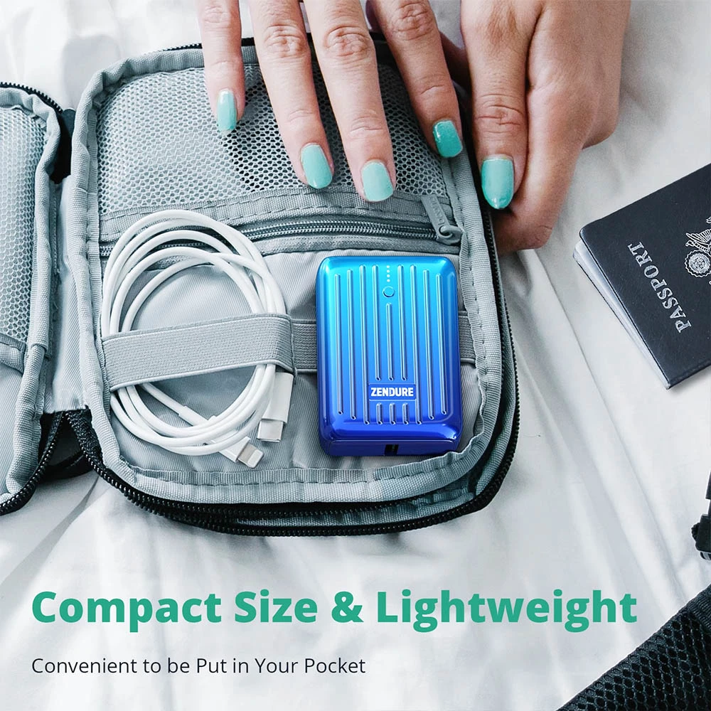 Superior Portability & Compact: Zendure Supermini portable power bank with the 21700 premium internal battery cells, ultra-slim suitcase design with metallic texture. 180g, smaller than a credit card, ONE of the smallest 10,000mAh external batteries on Amazon, worry-free to slip in your bag or pocket for daily use.